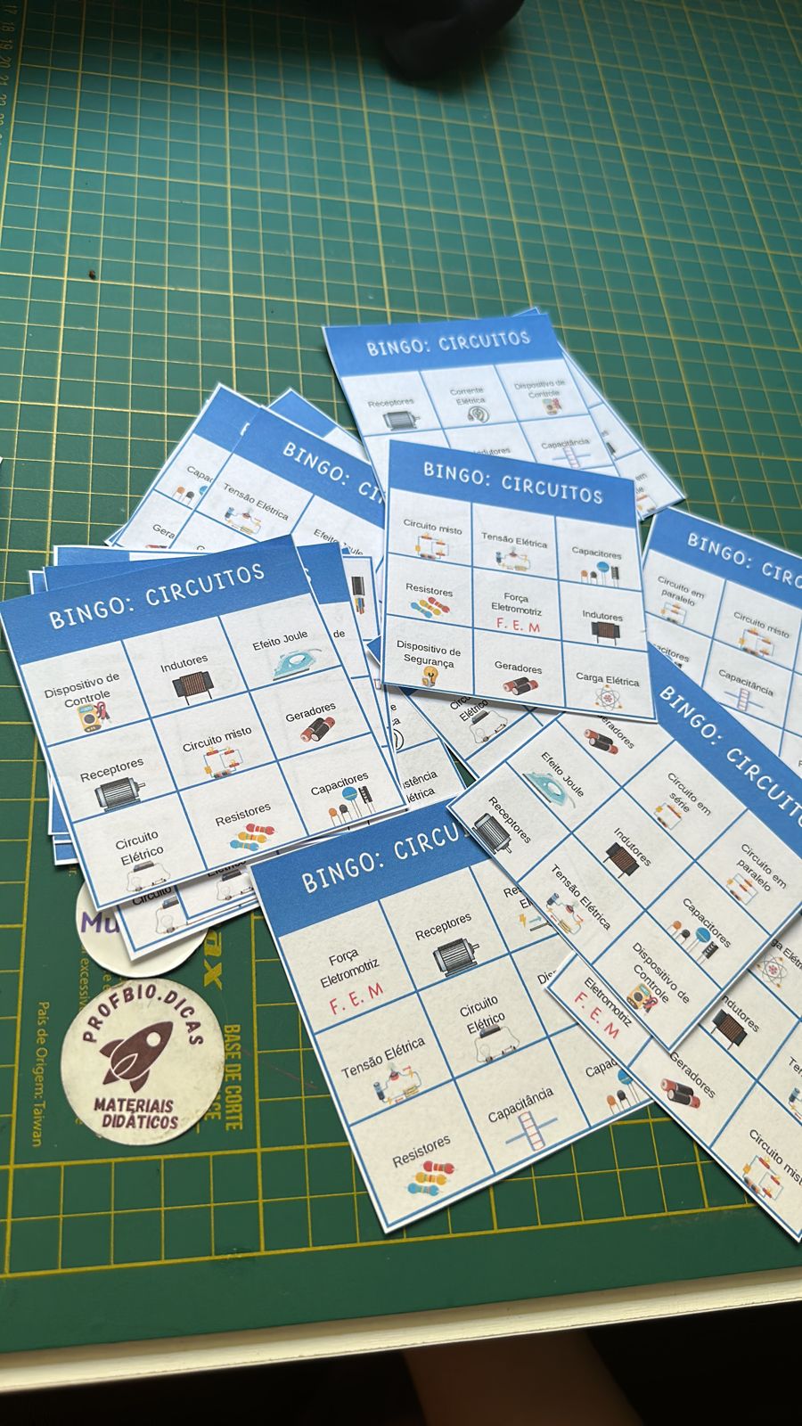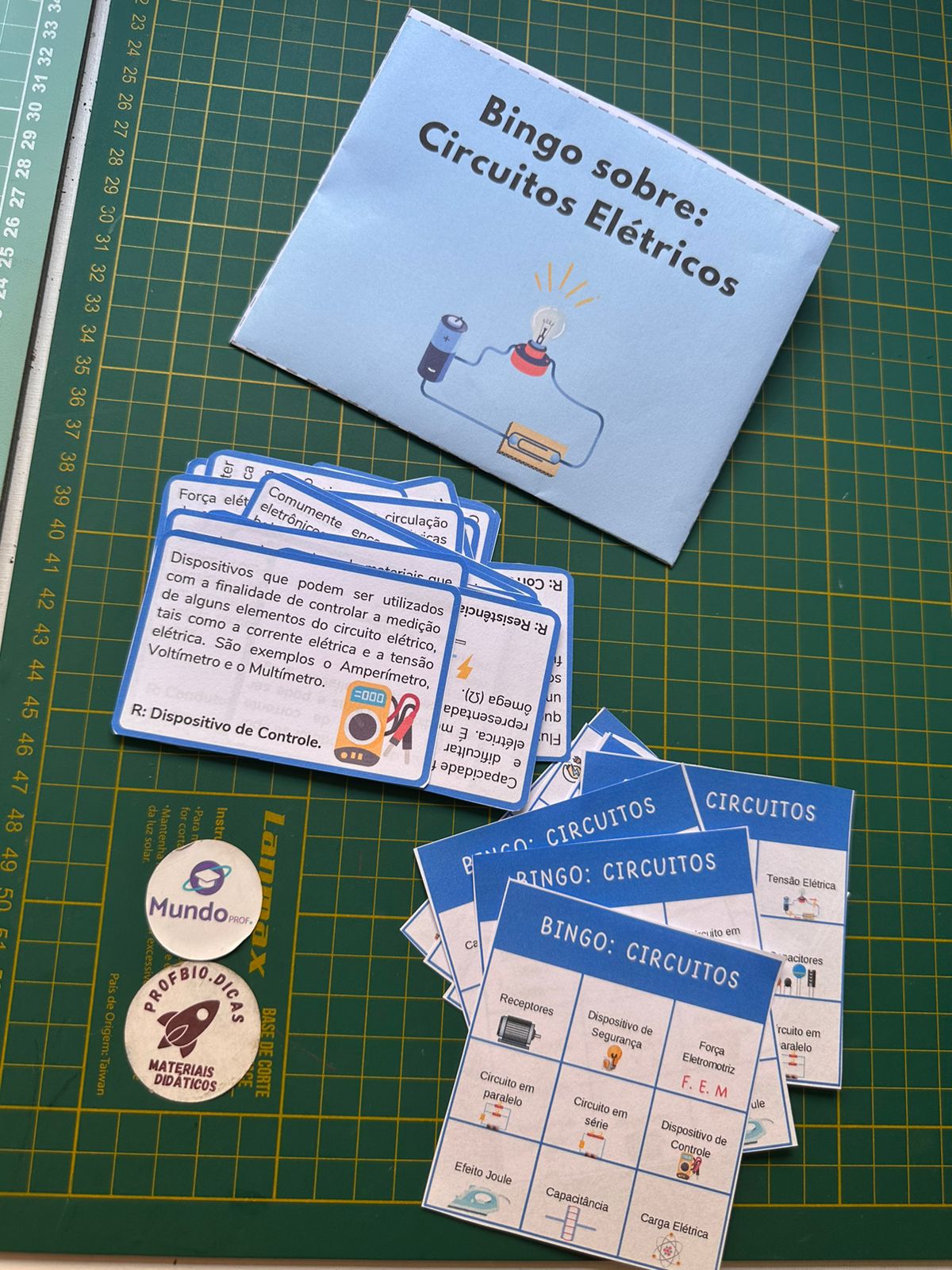 O material com 29 páginas é uma nova proposta de bingo sobre os Circuitos Elétricos. O material acompanha versões colorida e preto e branca de Cartelas, Cartas Conceitos para serem cantados pelo (a) professor (a), molde de caixa para guardar o material, assim como instruções de uso, sugestões para execução do material e de ano para uso.