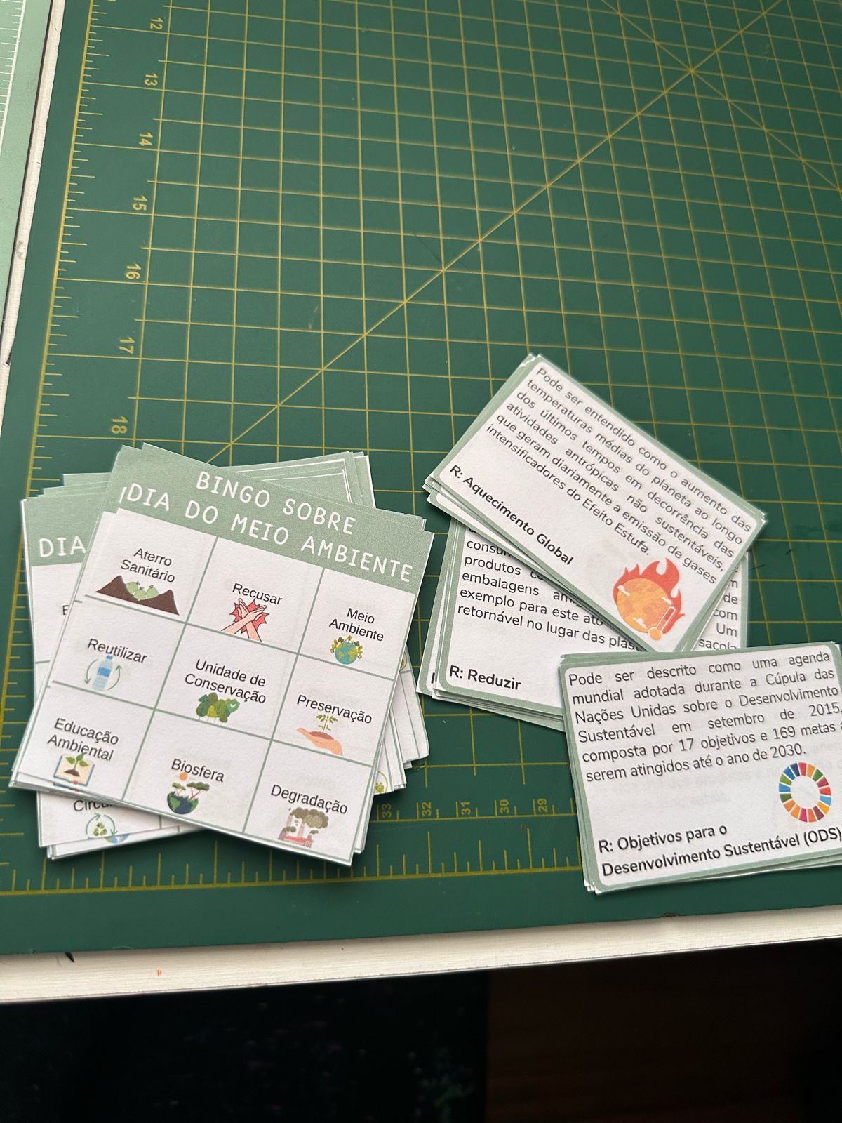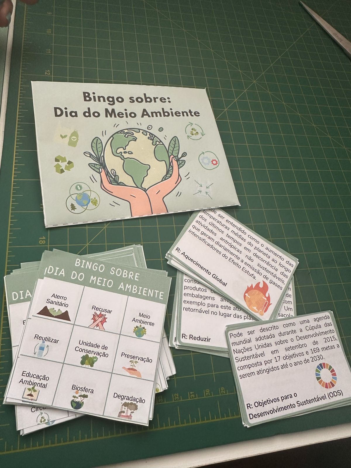 O novo material é uma proposta de Bingo para ser trabalhado no Dia Mundial do Meio Ambiente. O bingo apresenta diferentes cartelas de conceitos ligados ao assunto para serem cantados. O material apresenta instruções, gabarito, molde de envelope para guardar o material e versões colorida e preto e branca.