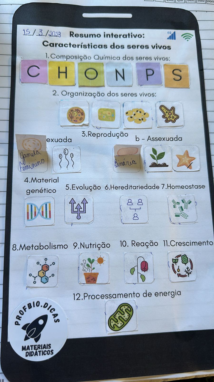 Jogo de Cartas sobre as características gerais dos seres vivos.