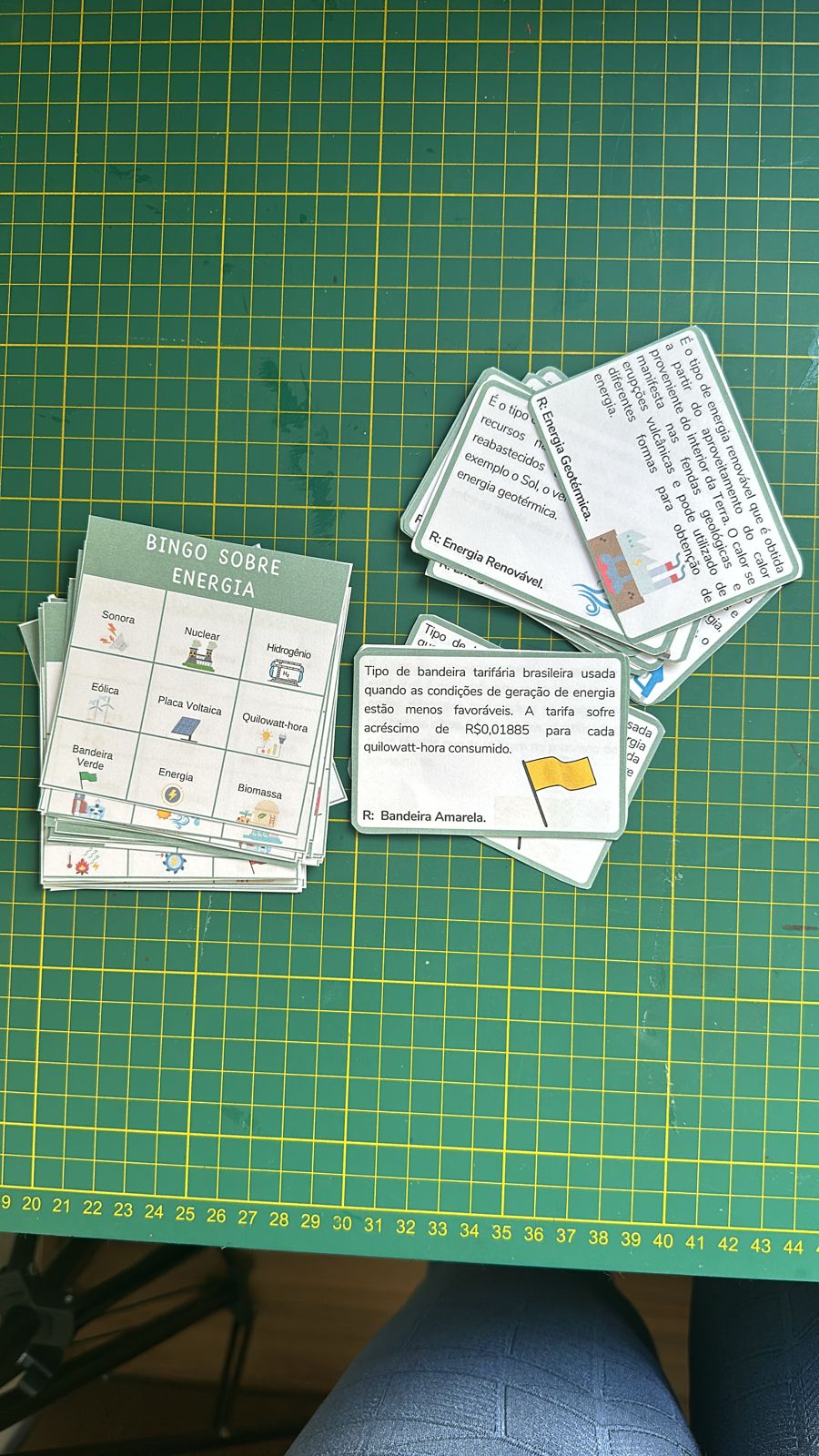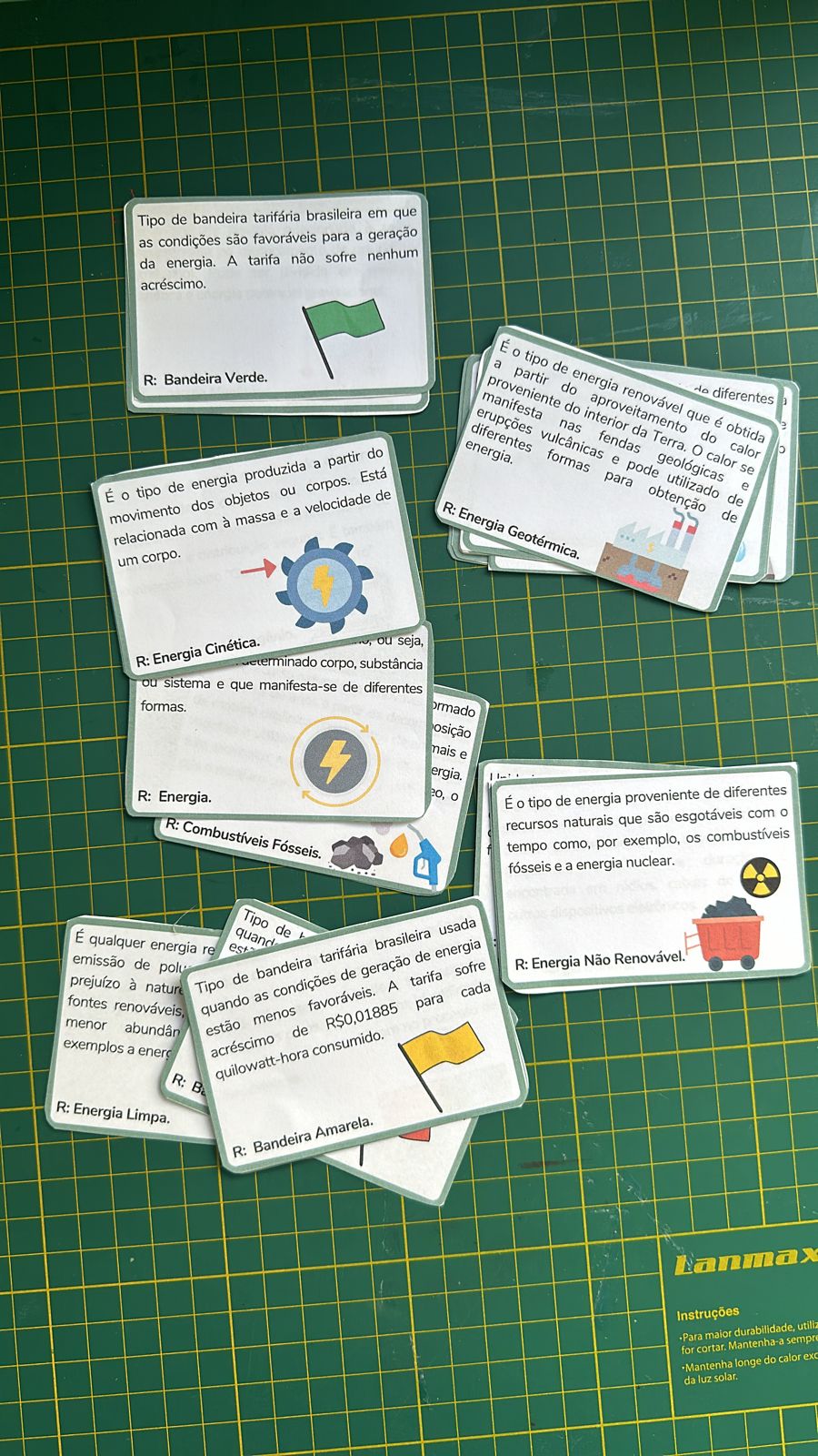 35 cartelas de conceitos sobre energia a serem distribuídas para os alunos.