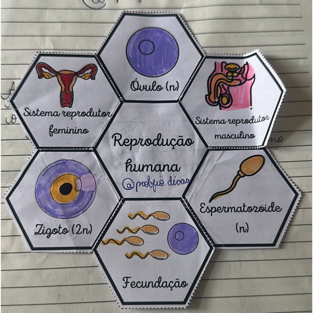 Molde preto e branco e colorido de 1 atividade de caderno interativo sobre reprodução humana.