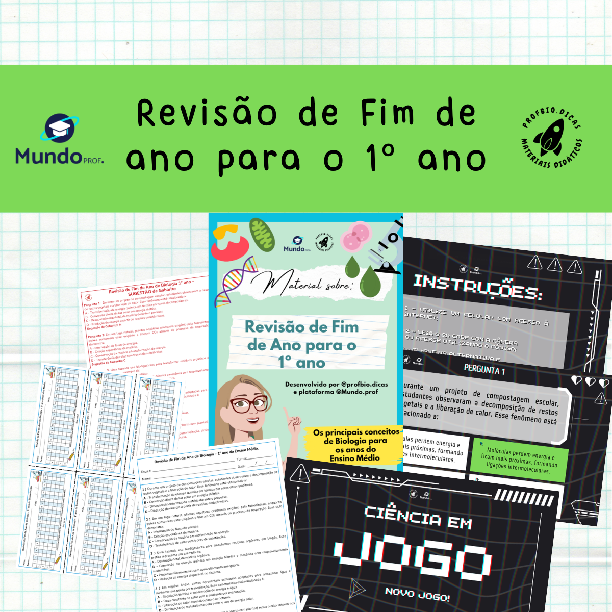 Os materiais de revisão de fim de ano foram desenvolvidos para reforçar os conteúdos trabalhados ao longo do ano letivo nas turmas do 1º ao 3º ano do Ensino Médio. Cada arquivo em PDF reúne 25 perguntas que retomam os principais temas estudados e pode ser utilizado em formato tradicional impresso ou de forma digital.