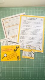 O material em PDF com 37 páginas é uma proposta de material para o desenvolvimento de uma prática investigativa interativa sobre o Método Científico. O material acompanha instruções para professores, moldes da atividade, roteiro de aplicação da prática, além de itens temáticos nas versões colorida e preto e branca, além de sugestões de gabarito, dentre outros.