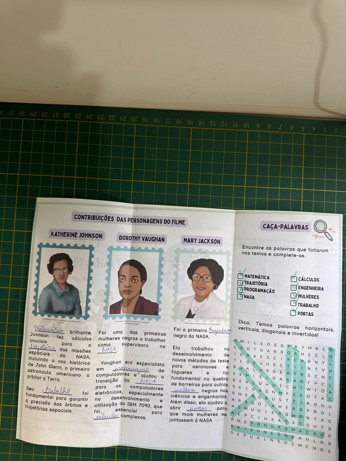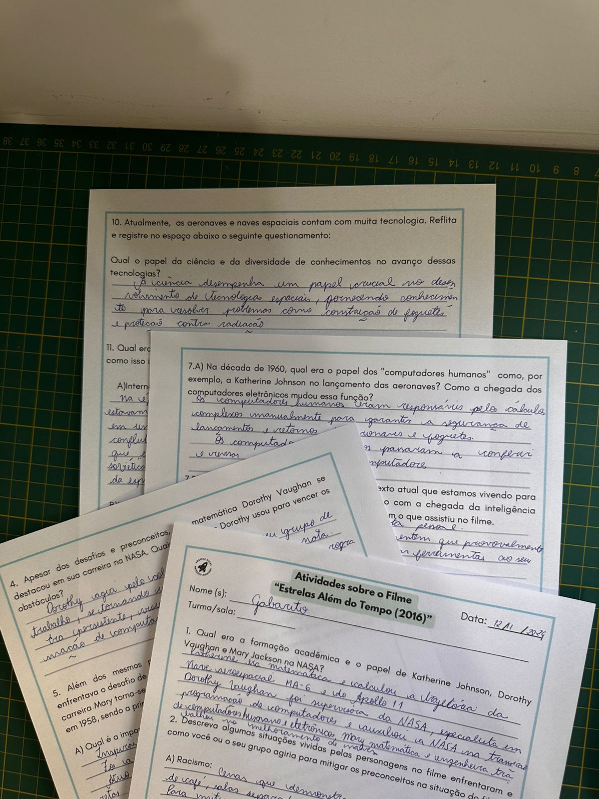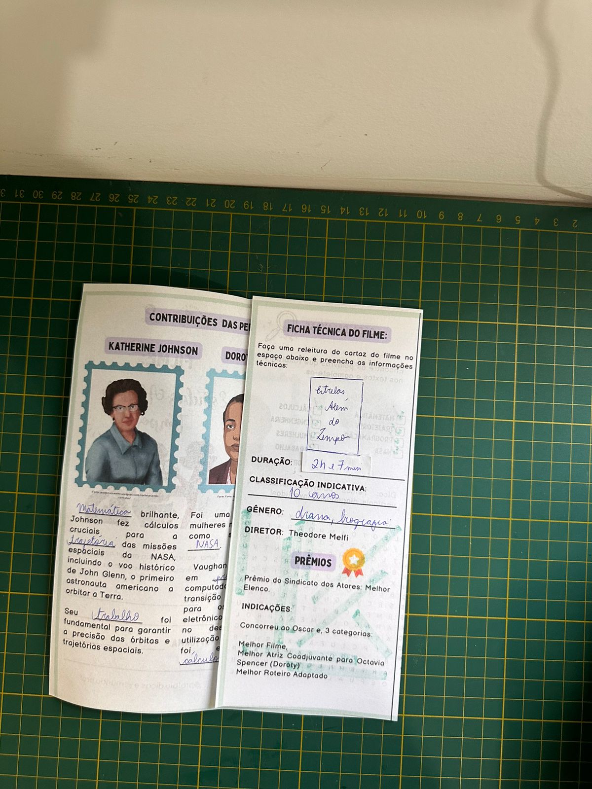 O material em PDF com 30 páginas é uma proposta de roteiro para trabalhar o filme Estrelas Além do Tempo (2016) O material acompanha instruções para professores,  sugestão de gabarito atividades sobre o filme,  folder com caça-palavras, nas versões colorida e preto e branca.