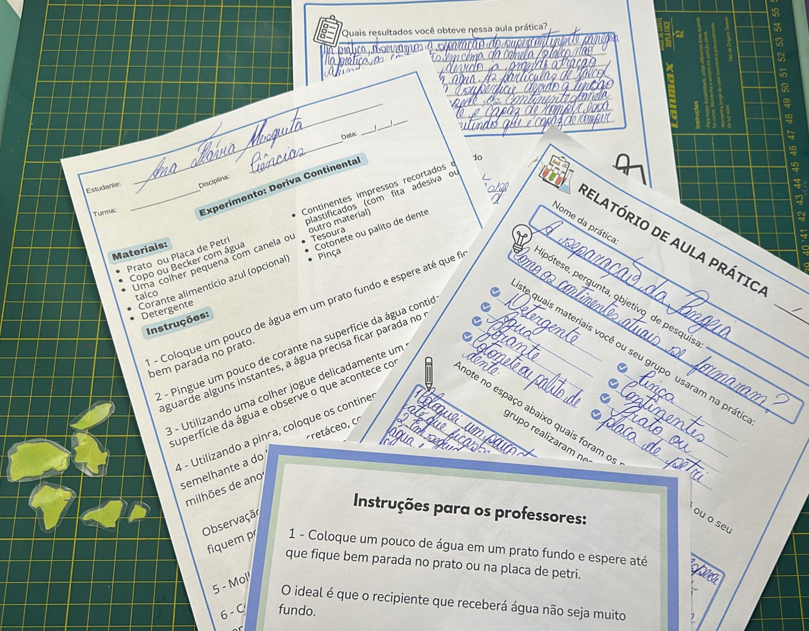 O material em PDF com 23 páginas é uma proposta de experimento sobre o processo de Deriva Continental. O material, além de instruções para desenvolvimento do experimento, acompanha moldes dos continentes, relatório de prática nas versões colorida e preto e branca e sugestão de gabarito.
