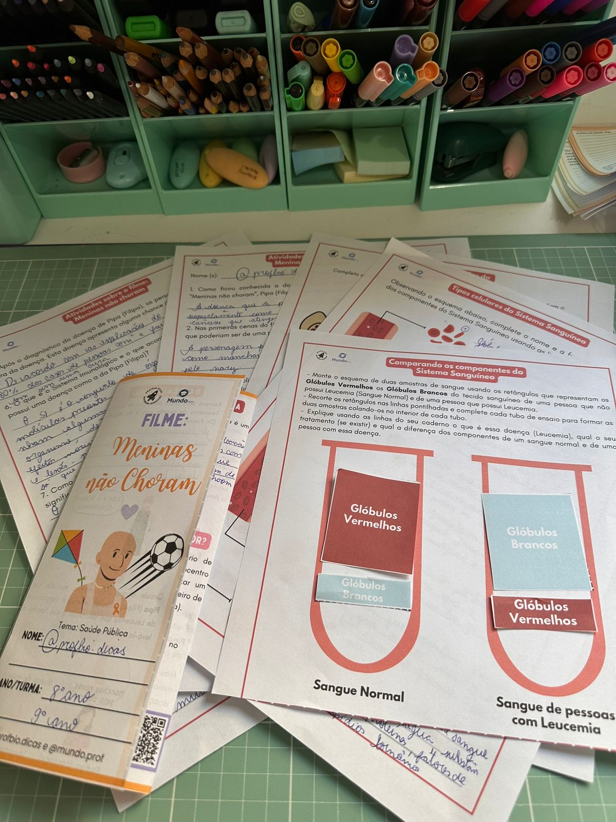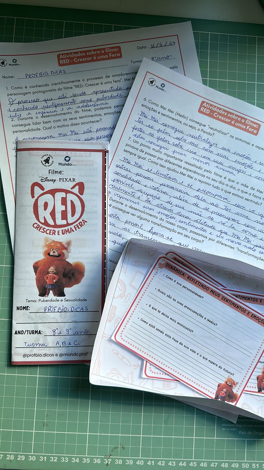 O material possui atividades de cada um dos filmes citados anteriormente, além de instruções, inclui sugestão de gabarito e versões colorida e preto e branca.