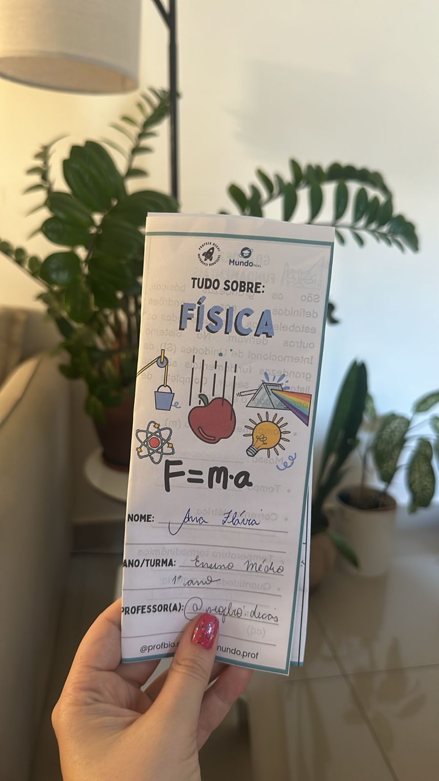 O material em PDF com 30 páginas é uma proposta de folder e atividades para introduzir à disciplina de Física. O material conta com diferentes versões de como introduzir a Física para os estudantes, podendo optar por quais utilizar. Acompanha instruções para professores, versões colorida e preto e branca, além de sugestões de gabarito.