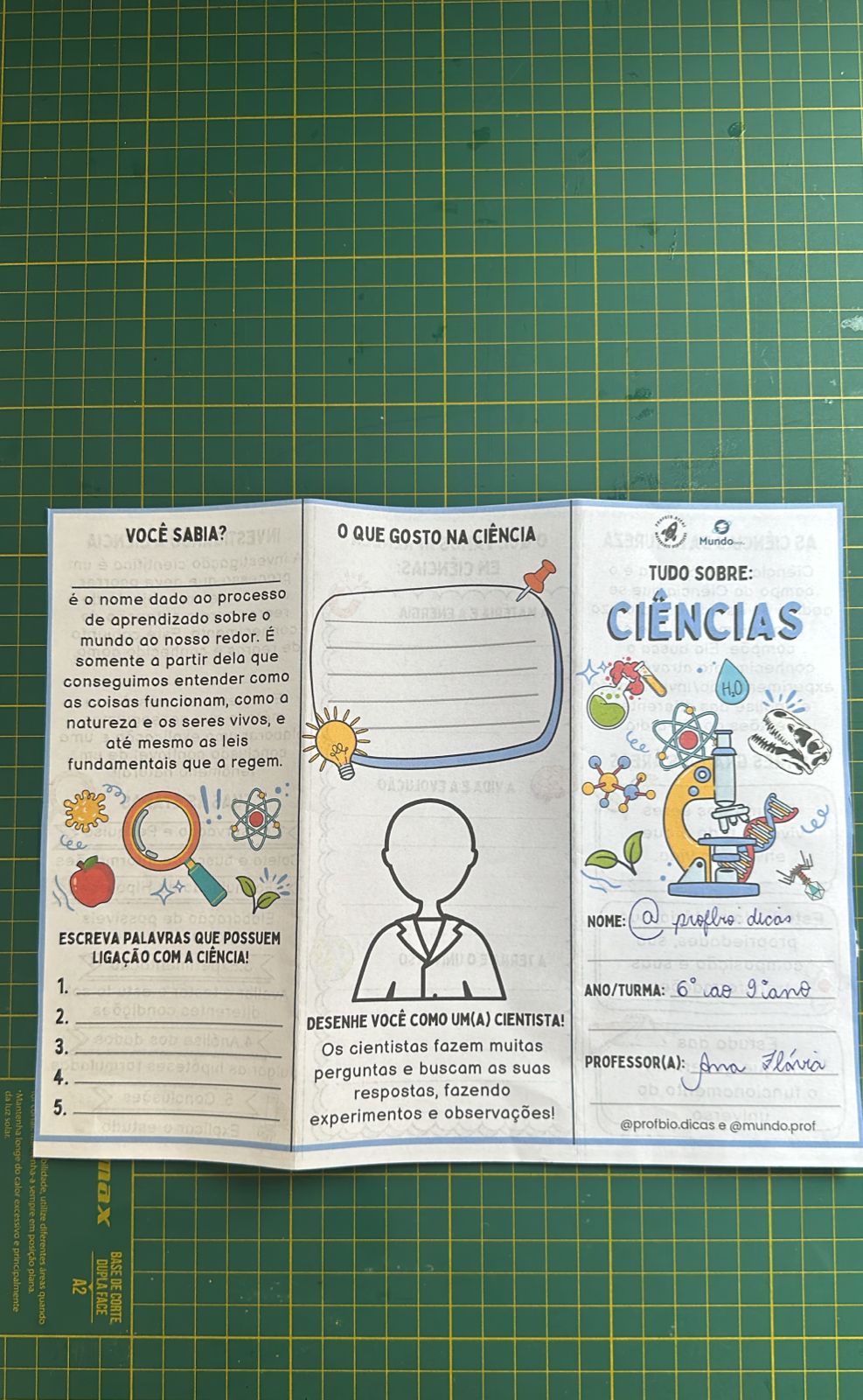 Folders de Introdução à disciplina de Ciências e Biologia: Método científico, o que é ciência? o que é biologia?