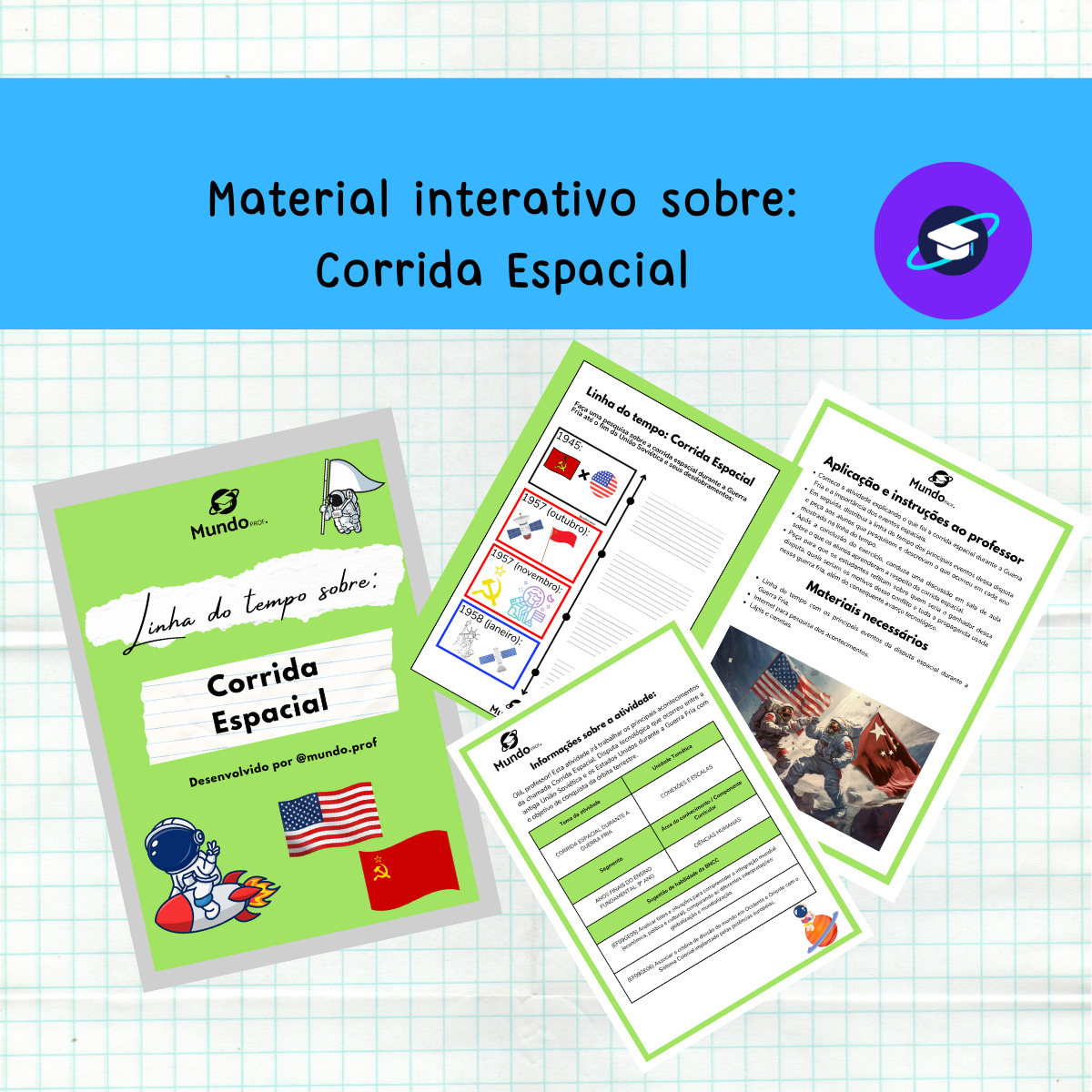 O material em PDF acompanha uma atividade que contém os principais acontecimentos da chamada Corrida Espacial.