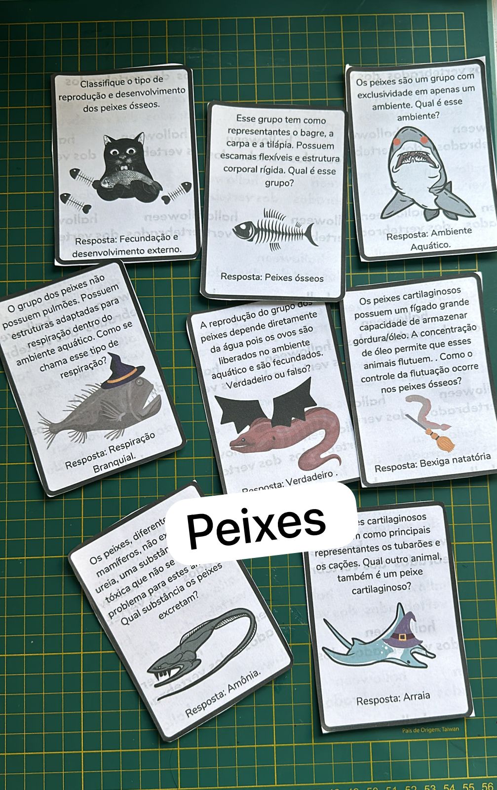 - 8 cartas-perguntas temáticas de Halloween sobre peixes