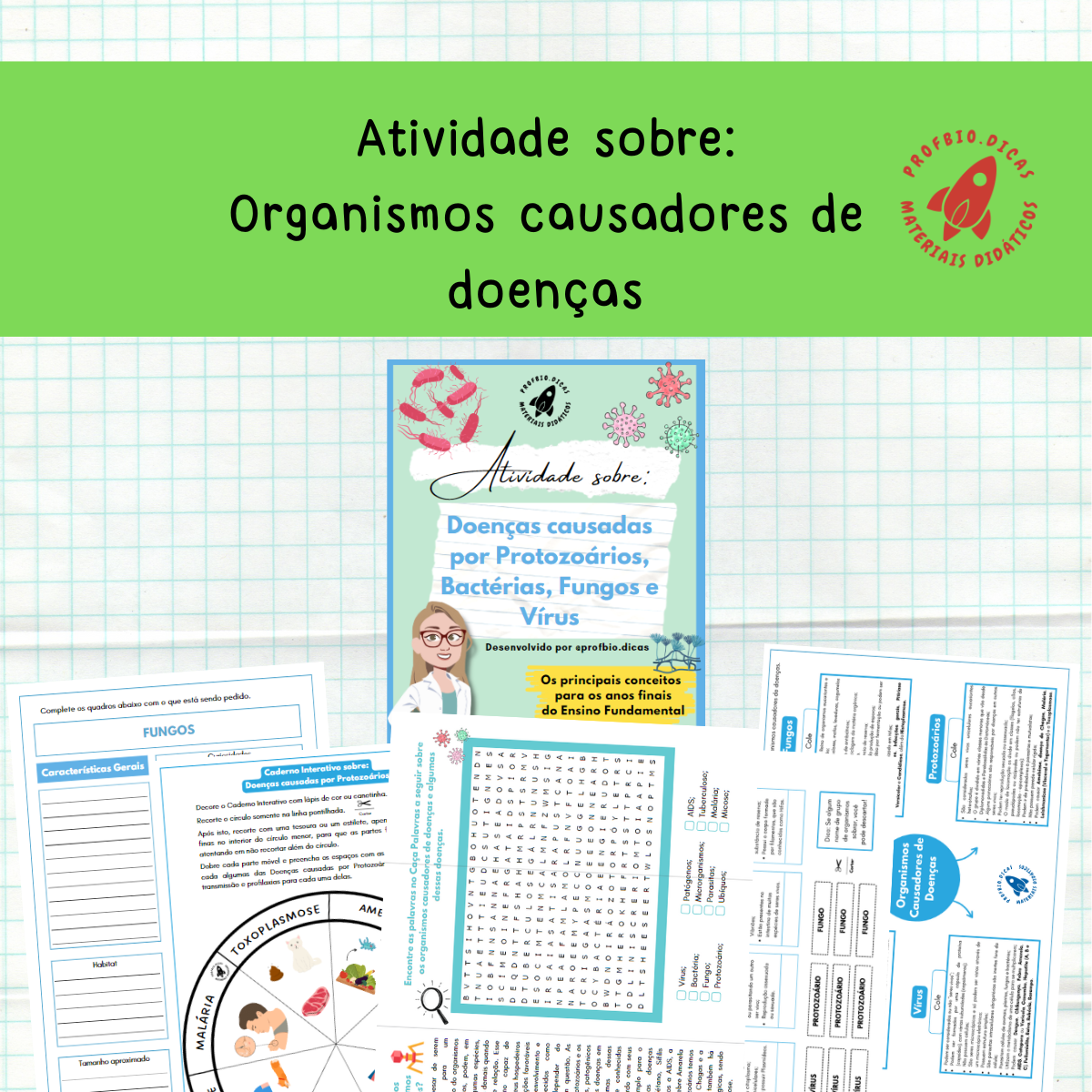O material em PDF possui 43 páginas com atividades diversas sobre os organismos responsáveis por doenças humanas e em outros seres vivos. O material conta com cadernos interativos e atividades, além de um folder nas versões colorida e preto e branca, instruções para professores e sugestões de gabarito. O material foi desenvolvido seguindo as habilidades EF07CI09 e EF07CI10 Sugestão de uso: 7º ano do Ensino Fundamental.