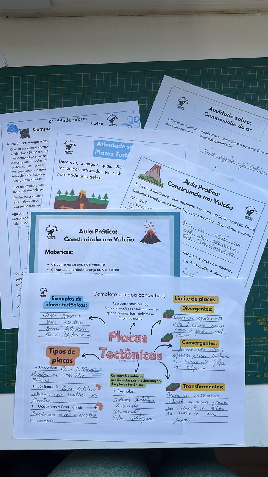 O material sobre Planeta Terra: Camadas da Terra, camadas do ar e Placas Tectônicas é um material interativo que acompanha sugestões de atividades práticas relacionadas ao tema, 02 atividades tradicionais sobre os componentes do ar atmosférico, caderno interativo e atividades sobre camadas da atmosfera, caderno interativo e atividades sobre camadas da Terra, caderno interativo, mapa mental e atividades sobre Placas Tectônicas, sugestão de prática de construção de um vulcão juntamente com uma atividade teórica sobre a temática, um molde de Triorama de um vulcão interno e sugestões de materiais gratuitos.