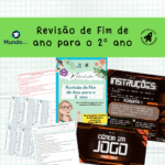 O material em PDF com 26 páginas e 25 perguntas é uma proposta de revisão de conteúdo com o nono ano sobre as matérias trabalhadas como eles no decorrer do ano letivo. O material é acompanhado por um slide de 80 páginas em PPTX e em PDF com um jogo interativo usando as mesmas perguntas da atividade. O PDF está disponível nas versões colorida e preto e branca e ambos os arquivos com instruções para professores e uma sugestão de gabarito.
