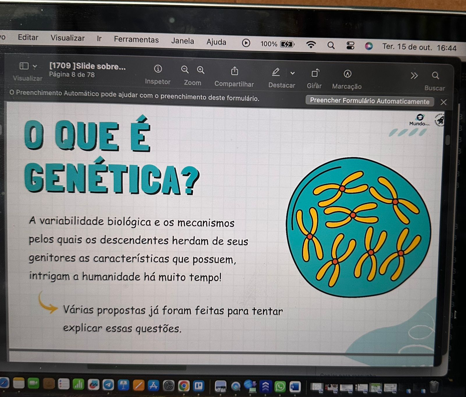 O material em PDF ou PPT é uma proposta de slide para trabalhar a temática de Genética. O material é um Slide desenvolvido para revisar o conteúdo introdutório sobre Genética e os diferentes conceitos iniciais da temática.