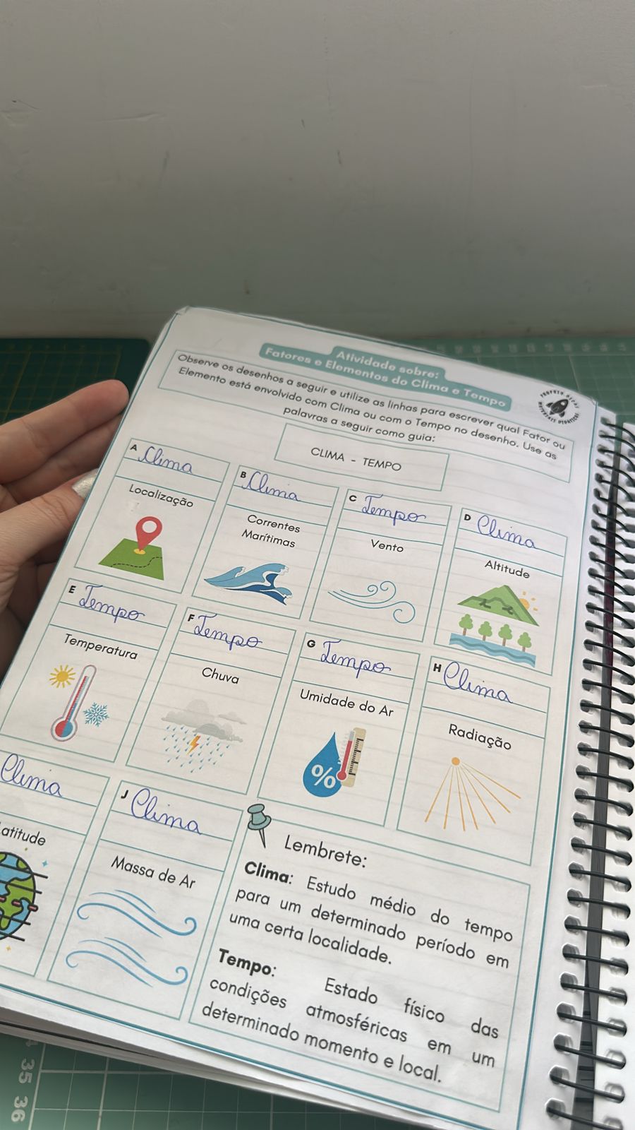 O material conta com atividades diversas, caderno interativo nas versões coloridas e preto e branca, além de uma sugestão de prática gratuita fazendo uso de tecnologia sobre o Tempo e o Clima, sugestões de gabarito e instruções para professores.