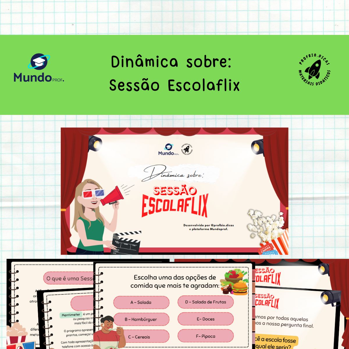 O material em formato de apresentação (slide) com 48 páginas é uma nova proposta para organização do planejamento anual para professores. O material acompanha instruções de realização de uma Sessão Escolaflix, uma dinâmica com perguntas simples para serem respondidas no formato múltipla escolha pelos estudantes para ajudar o professor no planejamento do ano letivo. O material acompanha um link com uma vídeo aula contextualizando para o professor algumas sugestões de uso da dinâmica Escolaflix. Acompanha uma lembrancinha em formato de marcador de páginas. Postagem do material 22 janeiro de 2024.